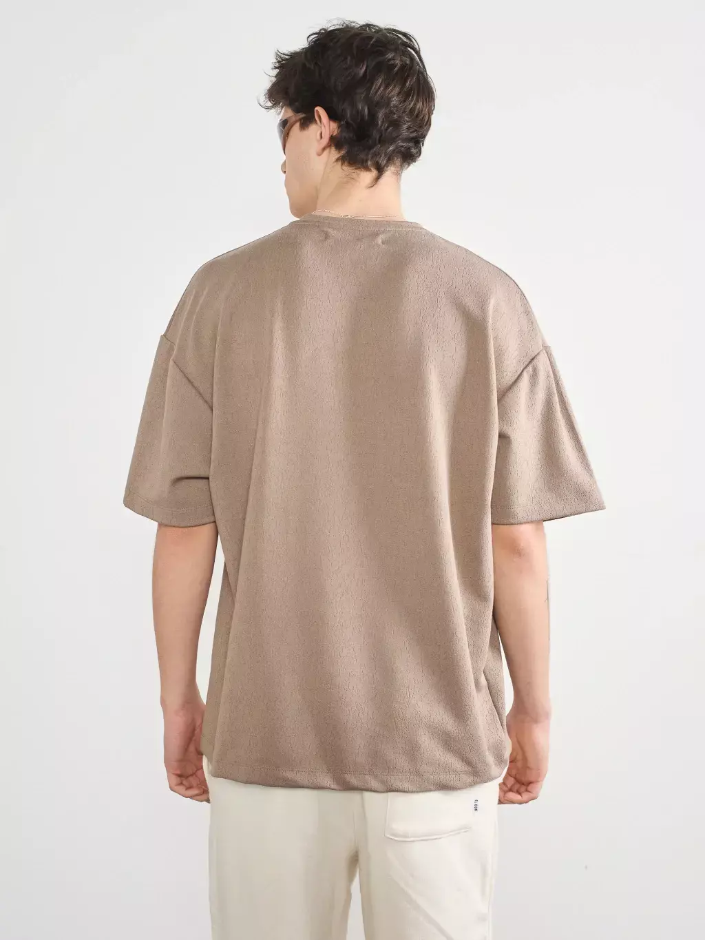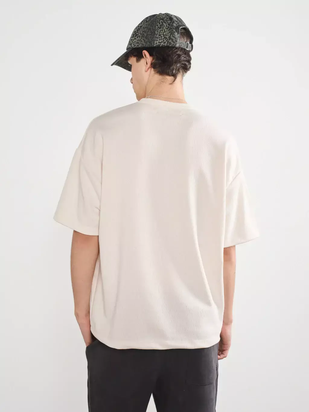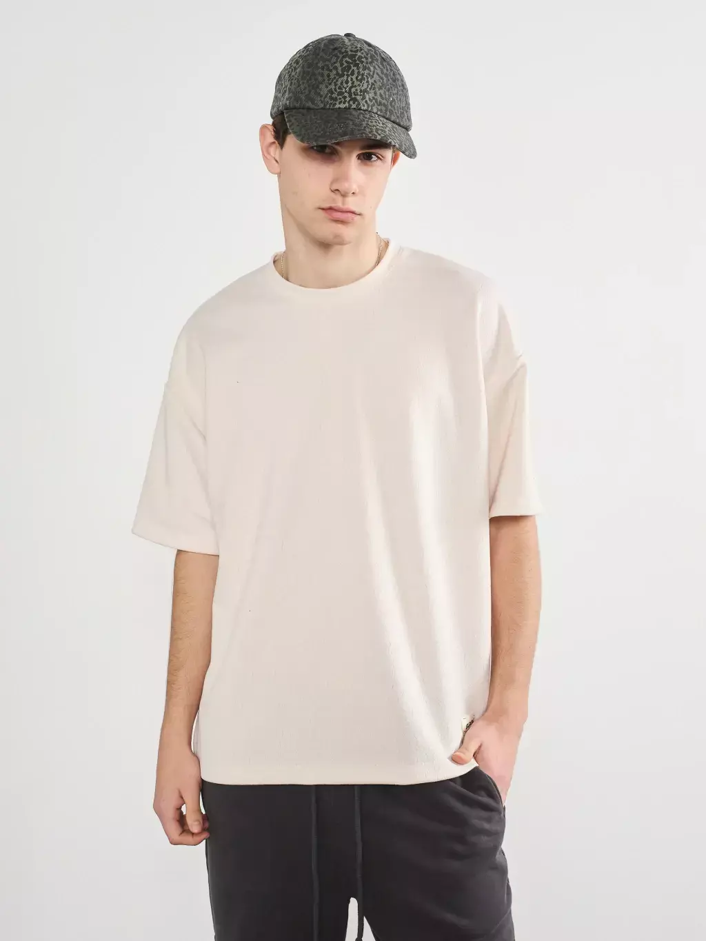 Esta remera oversize combina comodidad y estilo en una silueta amplia y moderna. Está confeccionada en una tela de punto con una textura en relieve sutil e irregular, que le aporta un look distintivo y actual. Su base compacta y con leve elasticidad asegura un buen ajuste sin perder confort. Ideal para quienes buscan una prenda básica con un toque diferente.